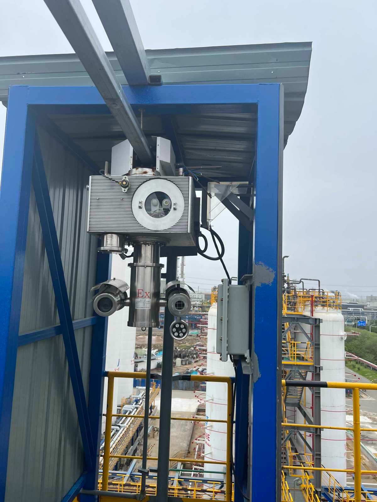 在厂区内,一名形似照相机的“空中安全卫士”吊轨机器人沿着空中轨迹慢慢移动,每到一个作业点,其“眼睛”——可360°旋转的摄像头便“瞻前顾后”,经过红外线扫描是否有走漏,检测可燃气体等,并将数据实时传送至体系。
