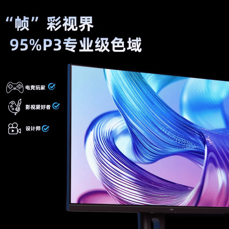 这款显示器的2K高清画质和180Hz高刷新率,确保了画面的流畅性和清晰度。95% P3广色域覆盖率让色彩还原精准,适合电竞爱好者和影视发烧友。